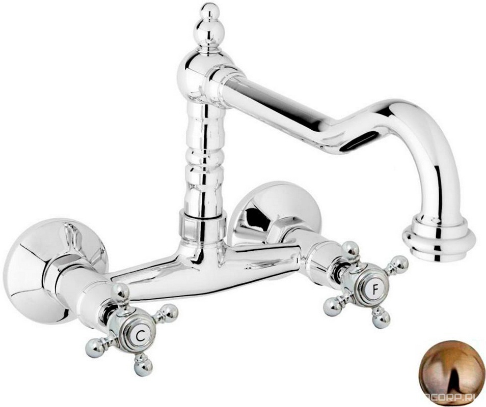 Смеситель для кухни, настенный монтаж, с повортным изливом, (цв. бронза), Golf ZZ