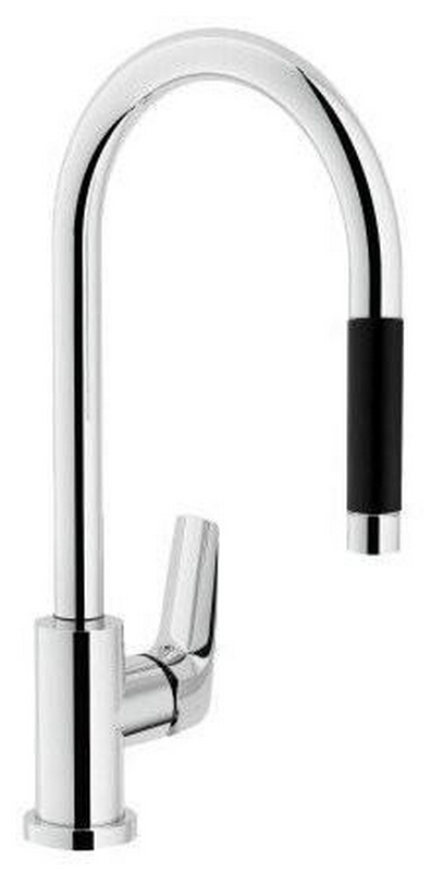 Смеситель для кухни Like с гибким изливом, цв.хром/черный излив, ZZ