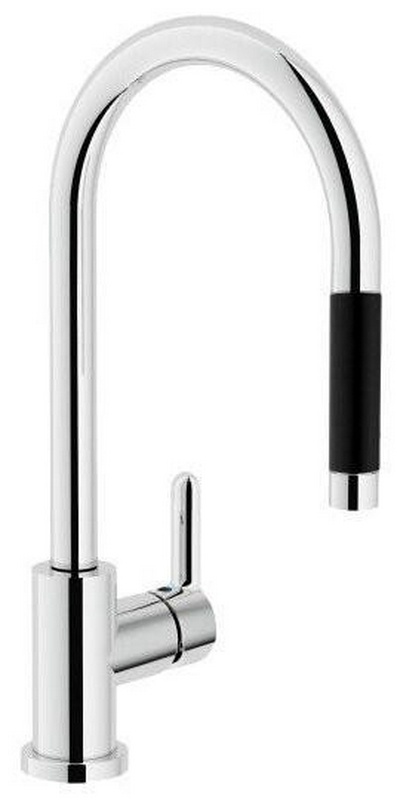 Смеситель для кухни Like с гибким изливом, цв.хром/черный излив, ZZ