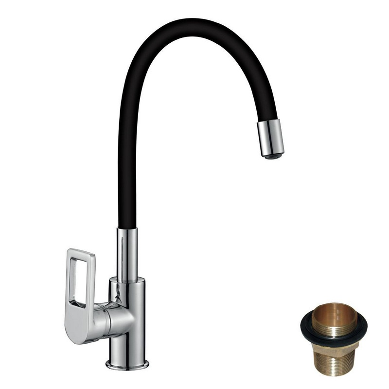 Смеситель для кухни Like с гибким изливом, цв.хром/черный излив, ZZ
