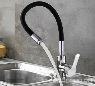Смеситель для кухни Like с гибким изливом, цв.хром/черный излив, ZZ