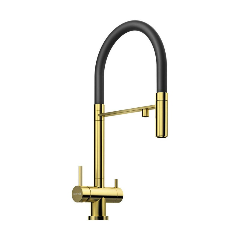 Смеситель для кухни Omoikiri Takamatsu-S LG, вытяжной шланг 40 см, встроенный кран д/питьевой воды, цв. золото, ZZ
