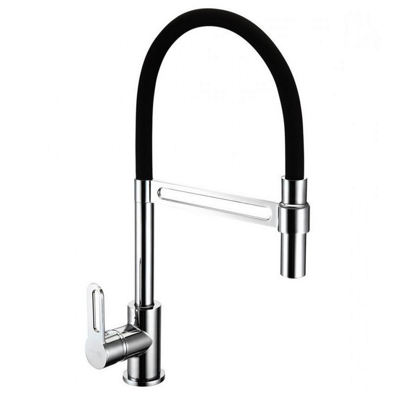 Смеситель для кухни Like с гибким изливом, цв.хром/черный излив, ZZ