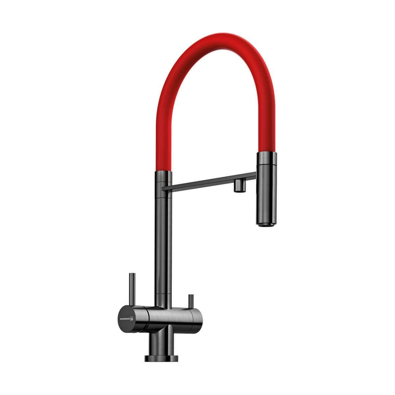 Смеситель для кухонной мойки Uno gun metall, гибкий излив цв. черный, встр. кран для питьевой, корпус темный хром матовый, ZZ