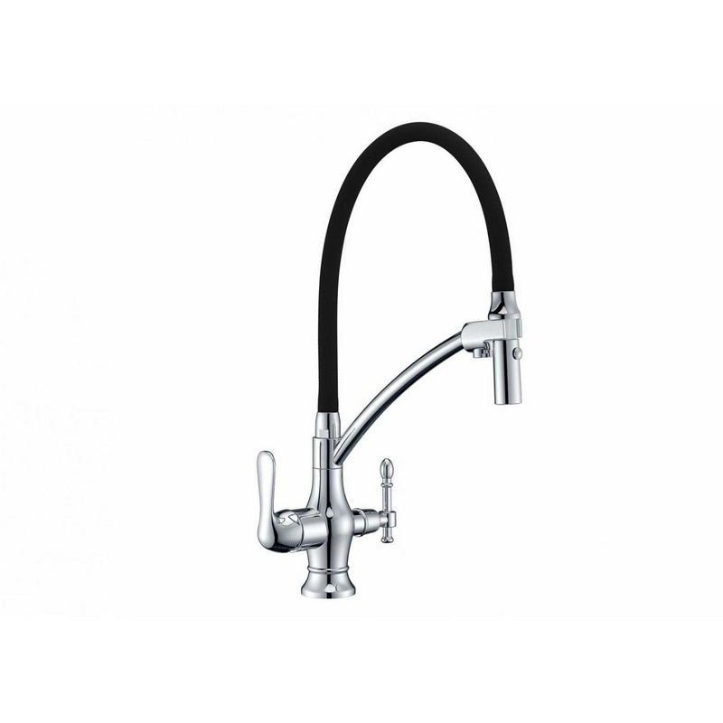 Смеситель для кухни, с подключением к фильтру с питьевой водой, цв.корпуса хром, излив черный ZZ