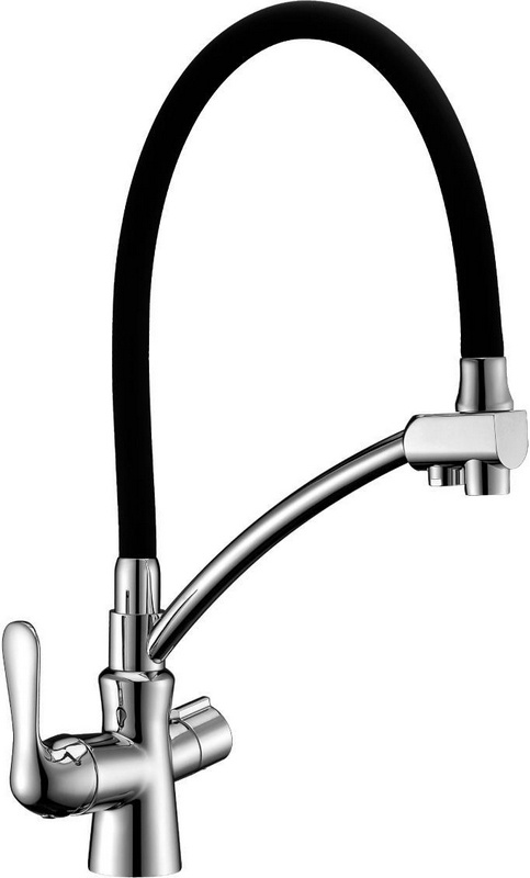 Смеситель для кухни, с подключением к фильтру с питьевой водой, цв.корпуса хром, излив черный ZZ