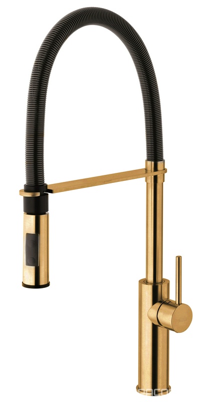 Смеситель для кухонной мойки, с выдвижным душем, 2 типа струи, (цв.золото/чёрный), Light ZZ