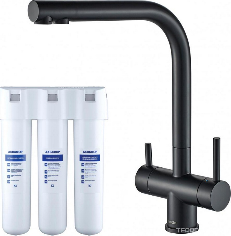 Смеситель д/ кухни с каналом для подключения фильтра, в комплекте с фильтром Аквафор Кристалл, (цв.черный), Selene Plus ZZ