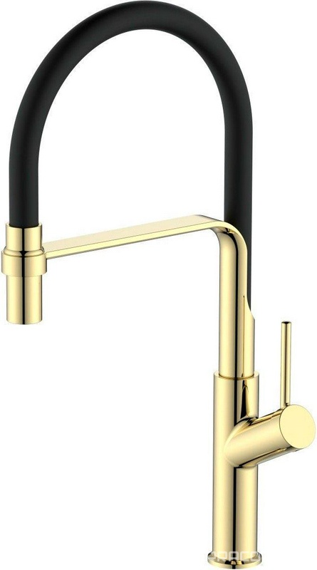 Смеситель для кухни, гибкий излив, цв. черный/матовое золото