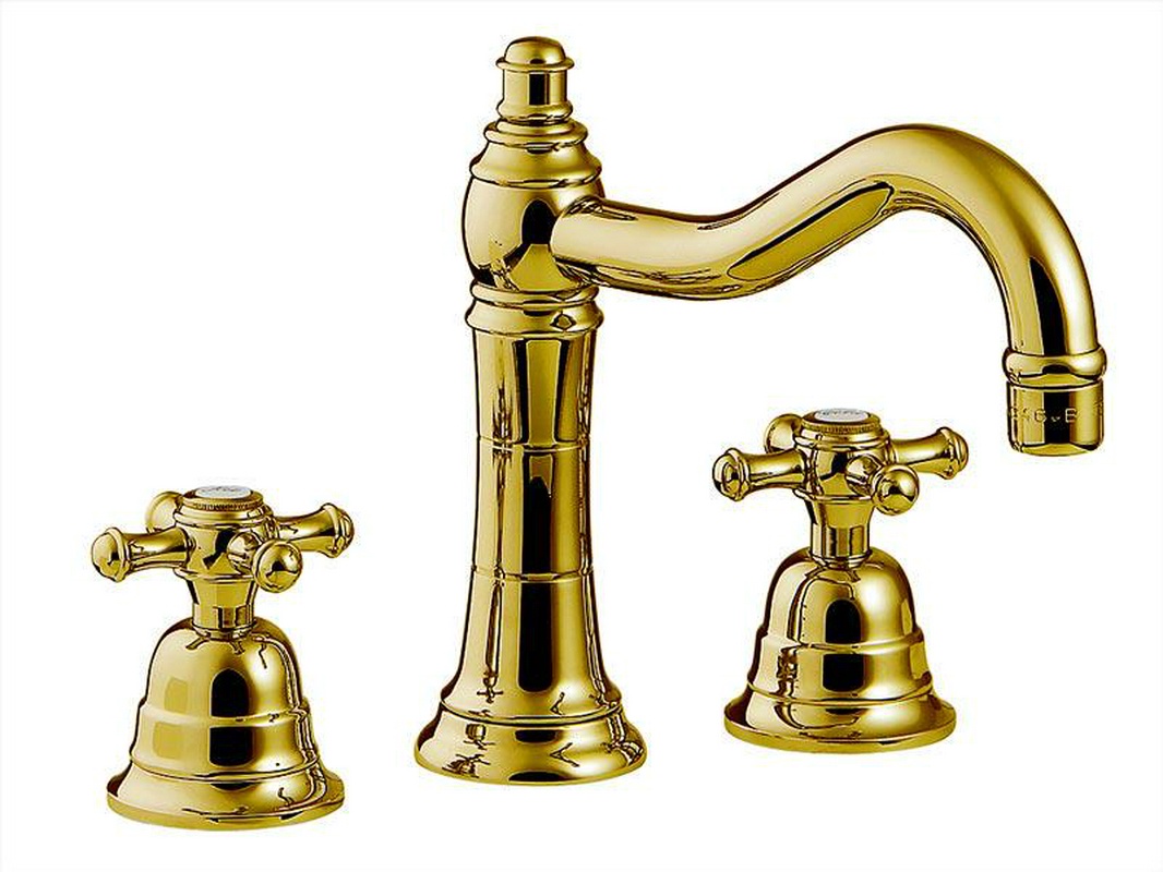 Смеситель для раковины, на 3 отв., Г-образн. излив, с д/к, (цв.золото), Old italy ZZ