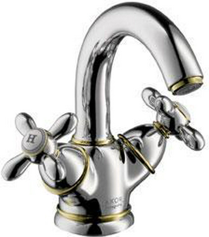 Смеситель для раковины, (с двумя ручками), поворотный излив, с д/к, (цв.хром/золото) XX Hansgrohe Axor Carlton 17030090