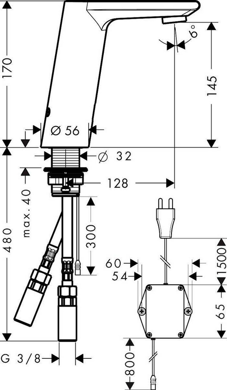 Смеситель для раковины электронный, питание от сети 230V, со скрытым регул. темп., без д/к, (цв.хром), Metris S ZZ