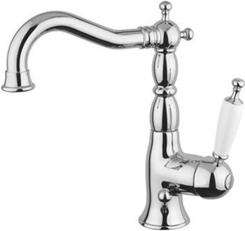 Смеситель для раковины, (рычаг сбоку), с д/к, (цв. хром, ручка цв. белый), Canterbury ZZ
