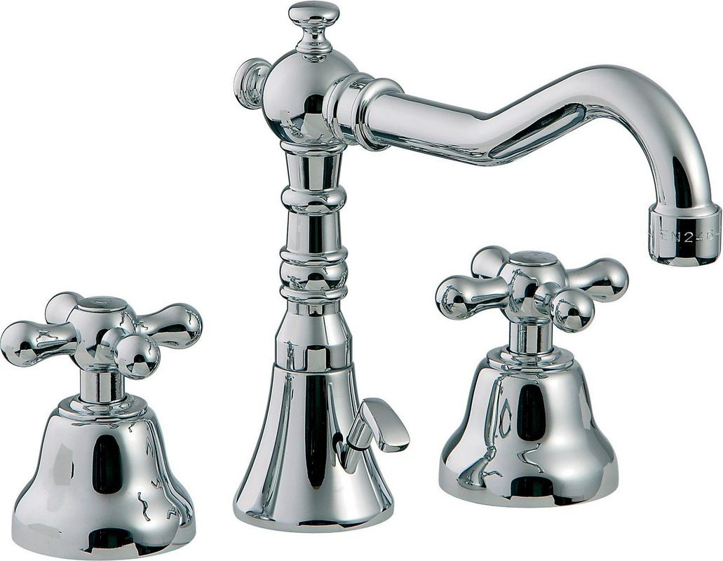 Cмеситель для раковины на 3 отв., с д/к, высокий "Г-образн." излив (цв.хром), Romantica ZZ