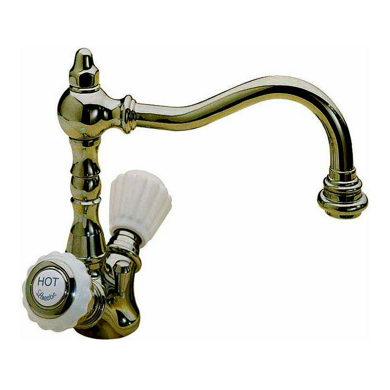 Смеситель для раковины, высокий с поворотным изливом, с д/к, (цв.бронза, ручка цв.белый), Elite ZZ
