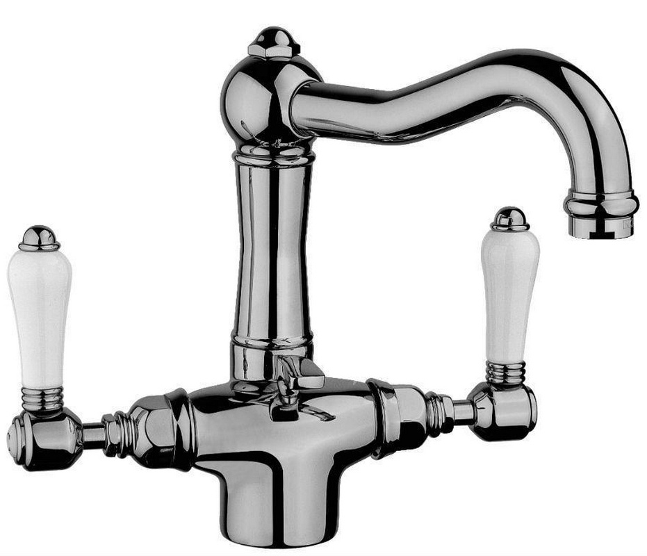 Смеситель для раковины на 1 отв., с д/к (цв.хром / ручки цв.белый P.M.Blanc), Nicolazzi ZZ