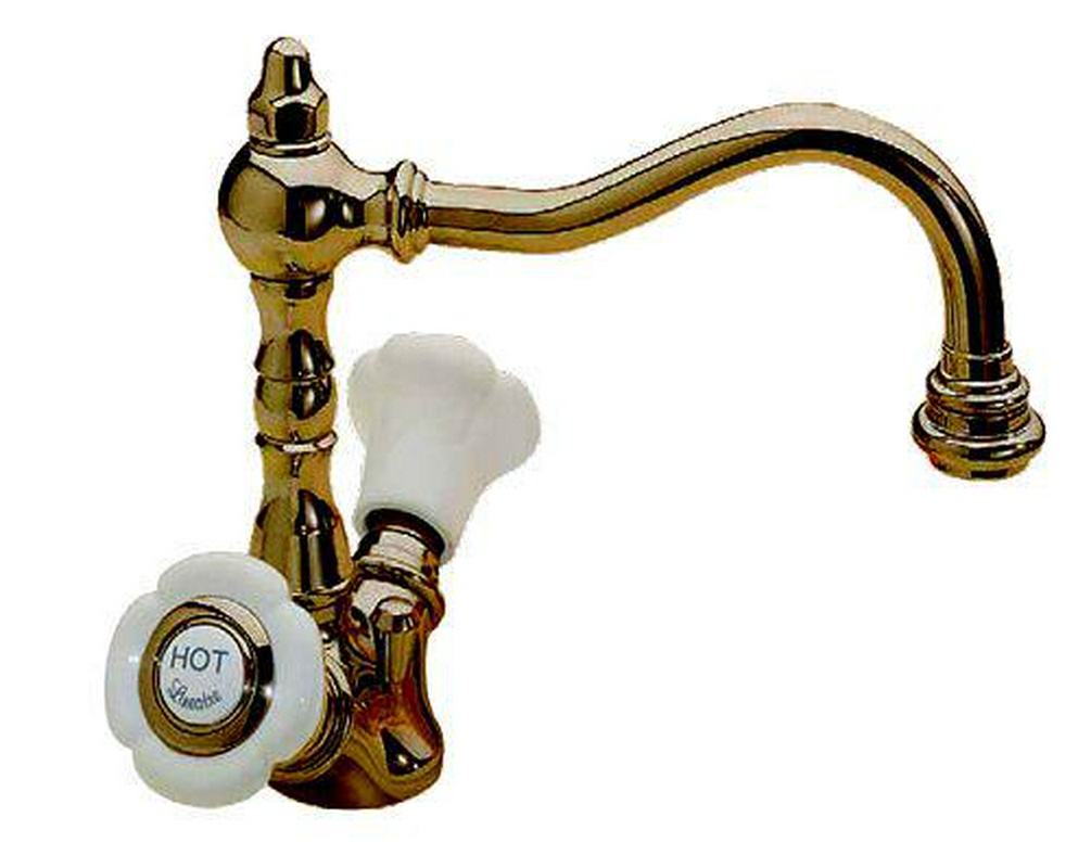 Смеситель для раковины, "Высокий" излив h280мм, (рычаг сбоку), с д/к, (цв. бронза, ручка цв. белый), Canterbury ZZ