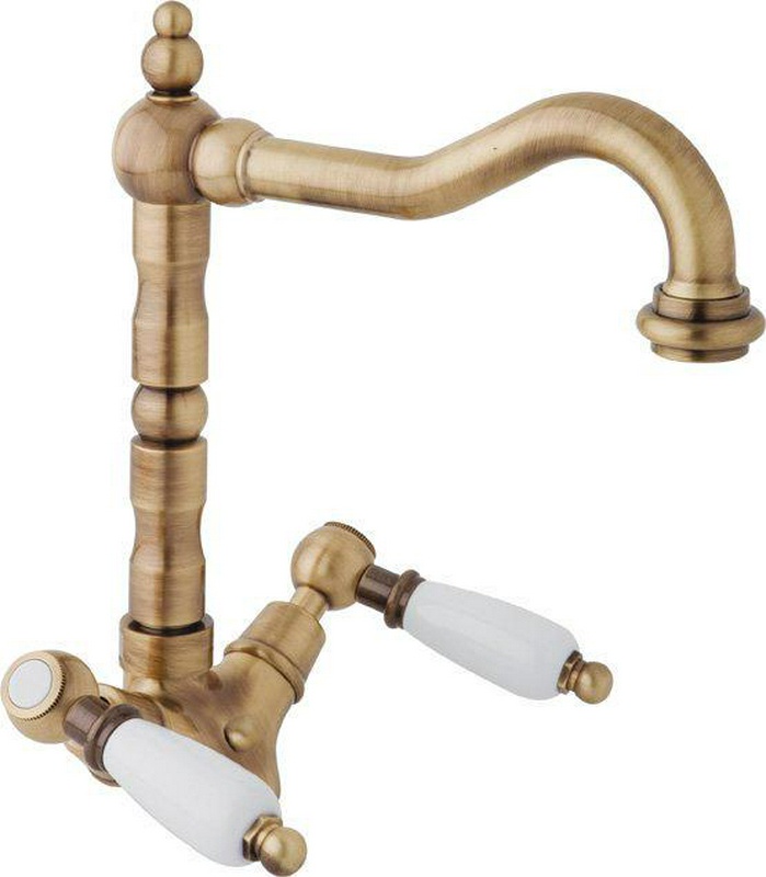 Смеситель для раковины, высокий с поворотным изливом, с д/к, (цв.бронза, ручка цв.белый), Elite ZZ