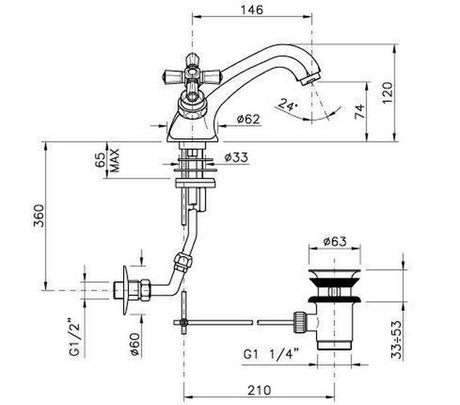 Смеситель для раковины, с д/к, (цв. хром), Teide Four ZZ