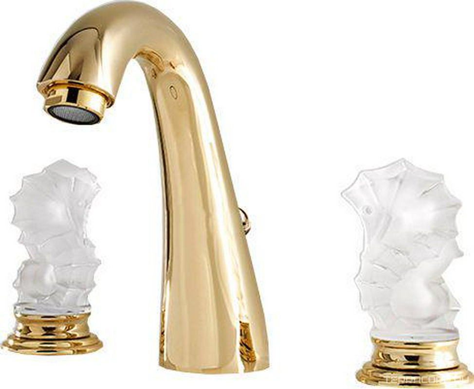 Смеситель для раковины на 3 отв., с д/к, (цв. золото, ручки муранское стекло ручной работы), Seahorse ZZ