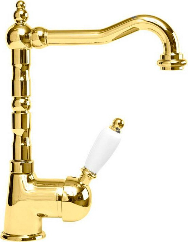 Смеситель для раковины, высокий с поворотным изливом, с д/к, (цв.золото 24К, ручка цв.белый), ZZ Cezares Elite ELITE-LSM2-03/24-Bi