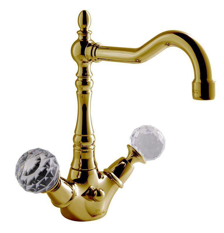 Смеситель для раковины, высокий, с поворотным изливом, с д/к, (цв. золото), ZZ Fima Carlo Frattini Elizabeth Chic F5091COR