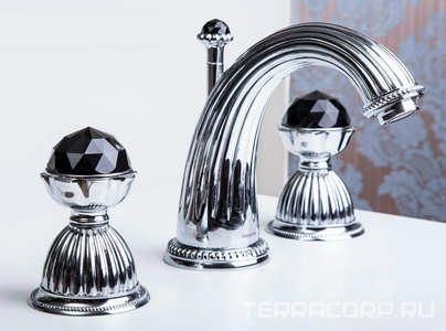 Смеситель для раковины на 3 отв. с д/к, (цв.хром/ручки black Swarovski cristal), Artica ZZ