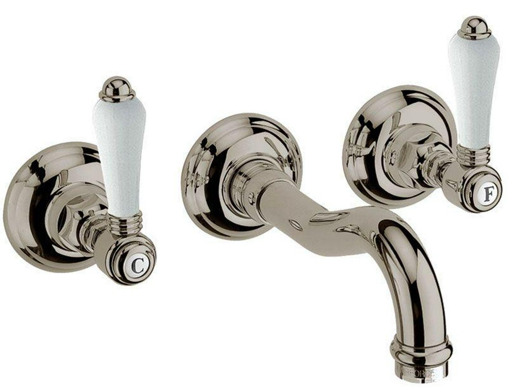 Cмеситель для раковины встр. в стену на 3 отв.,классич. излив 185мм, (цв. NS никель сатин, ручка P.M.Blanc), Nicolazzi ZZ