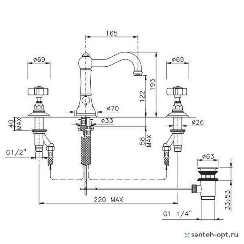 Смеситель для раковины на 3 отв. с повотным изливом и д/к (цв.Antique gold/ручки El Capitan), Nicolazzi ZZ