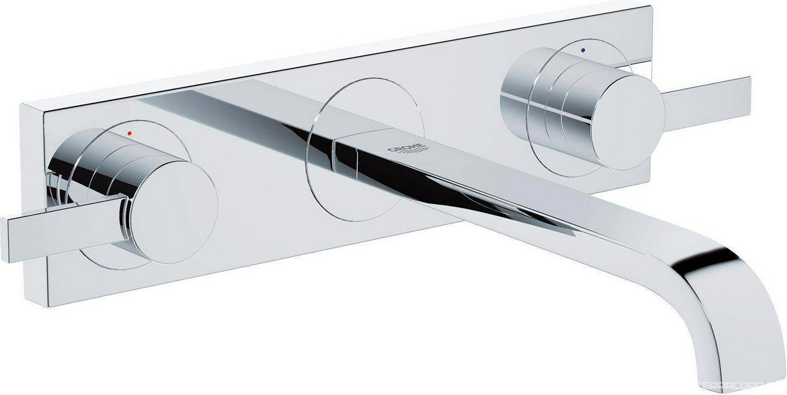 Смеситель для раковины на 2 отверстия, настенный монтаж, внутр. часть в комплекте, хром