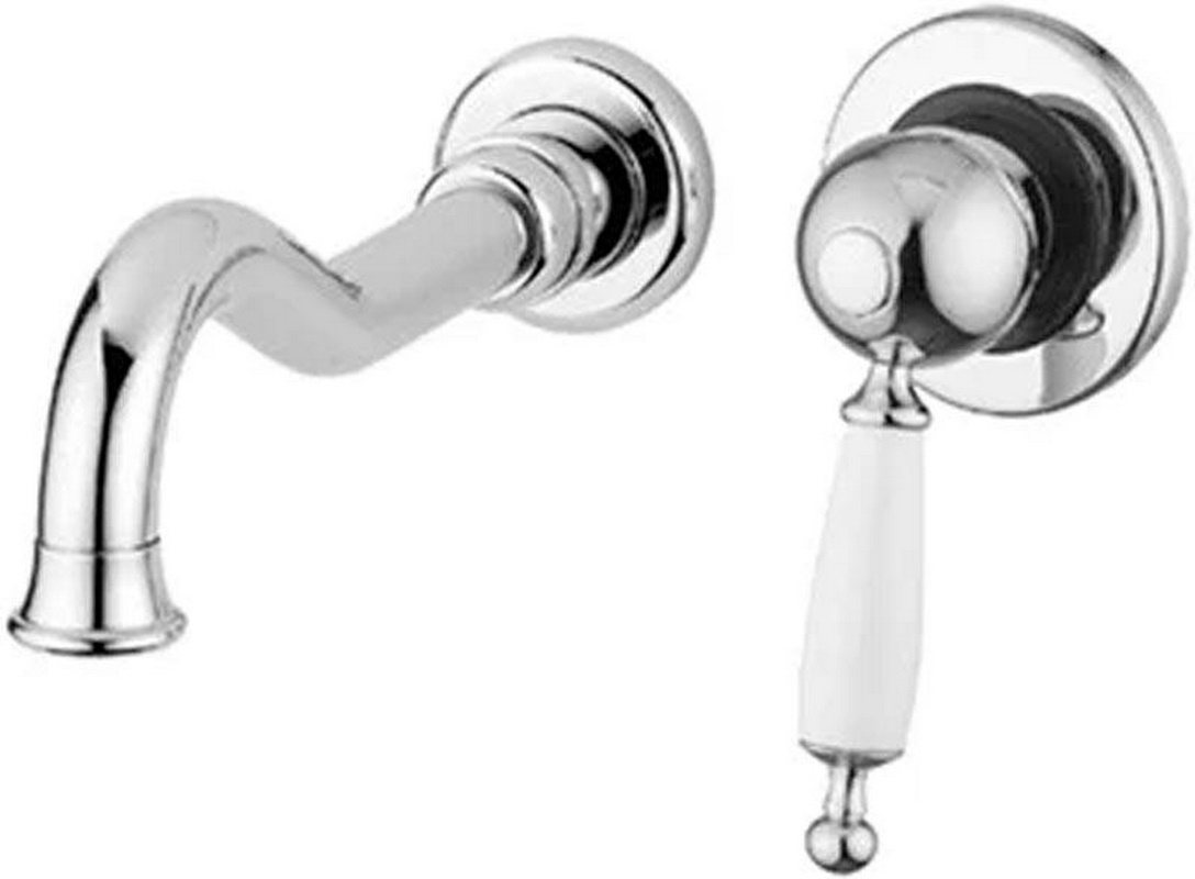 Смеситель для раковины, настенный, встраиваемый, на 2 отв., излив 190мм, (цв. золото, ручка цв. белый), Canterbury ZZ