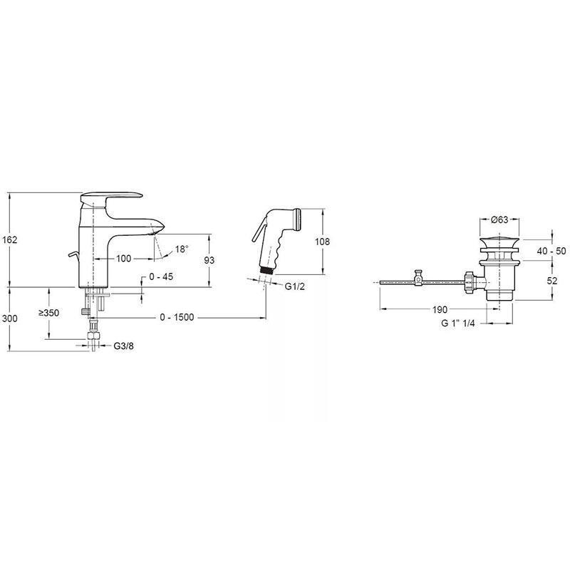 Смеситель для раковины Kumin с гигиенич. душем, донный клапан в комплекте, хром