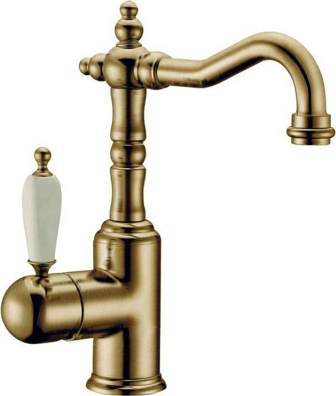 Смеситель для раковины, высокий, однорычажный, без донного клапана, бронза