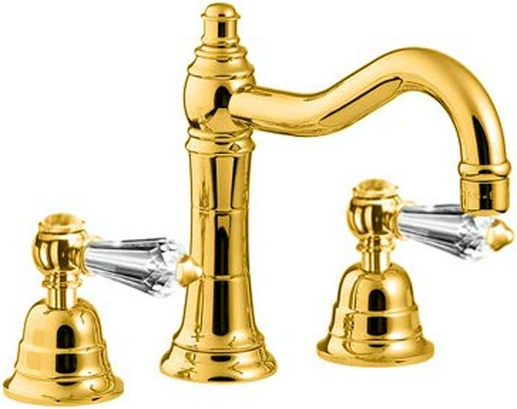 Смеситель для раковины, на 3 отв., Г-образн. излив, с д/к, (цв.золото, ручки SW - Swarovski), Old italy ZZ