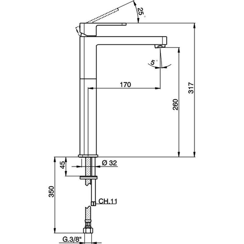 Смеситель для раковины, Высокий, излив h317мм, без д/к, (цв. хром), Roadster KL