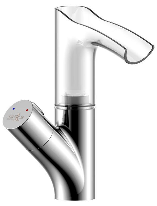 Смеситель для раковины, с прозрачным изливом и подсветкой, без донного клапана, хром XX