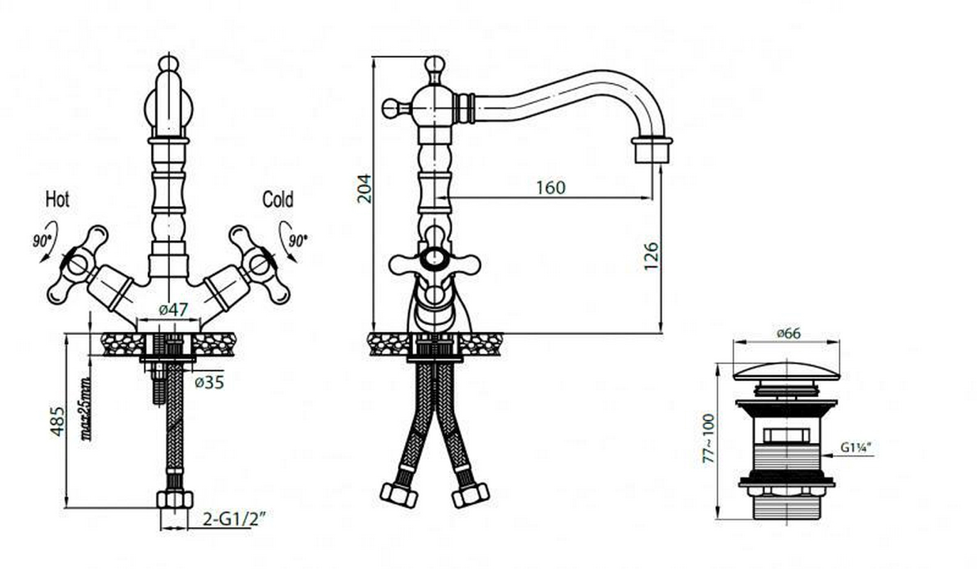 Смеситель для раковины, с поворотным изливом, с нажимной пробкой д/к, (цв. белый/хром), Retro ZZ