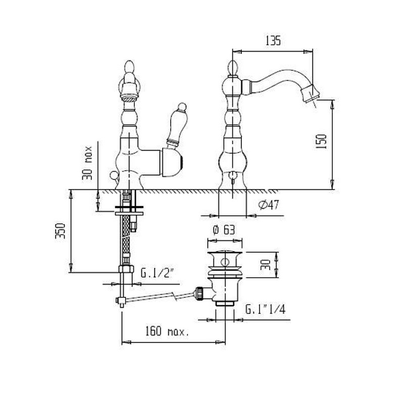 Смеситель для раковины, с поворотным изливом, с д/к, (цв.бронза, ручка цв.белая), Venezia ZZ