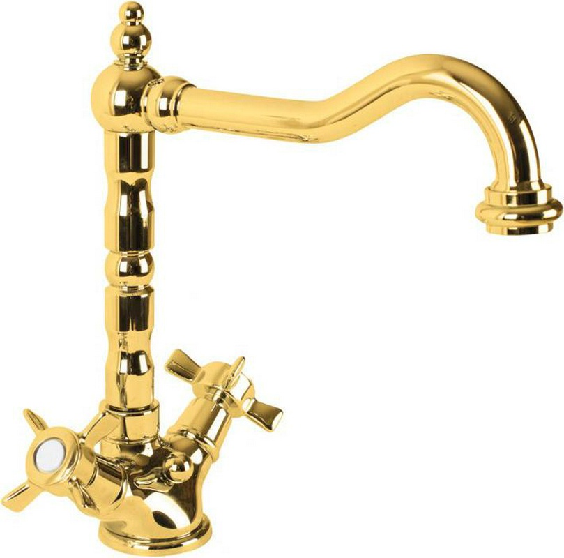 Смеситель для раковины, "Высокий", с поворотным изливом, с д/к, (цв. золото), Lord ZZ