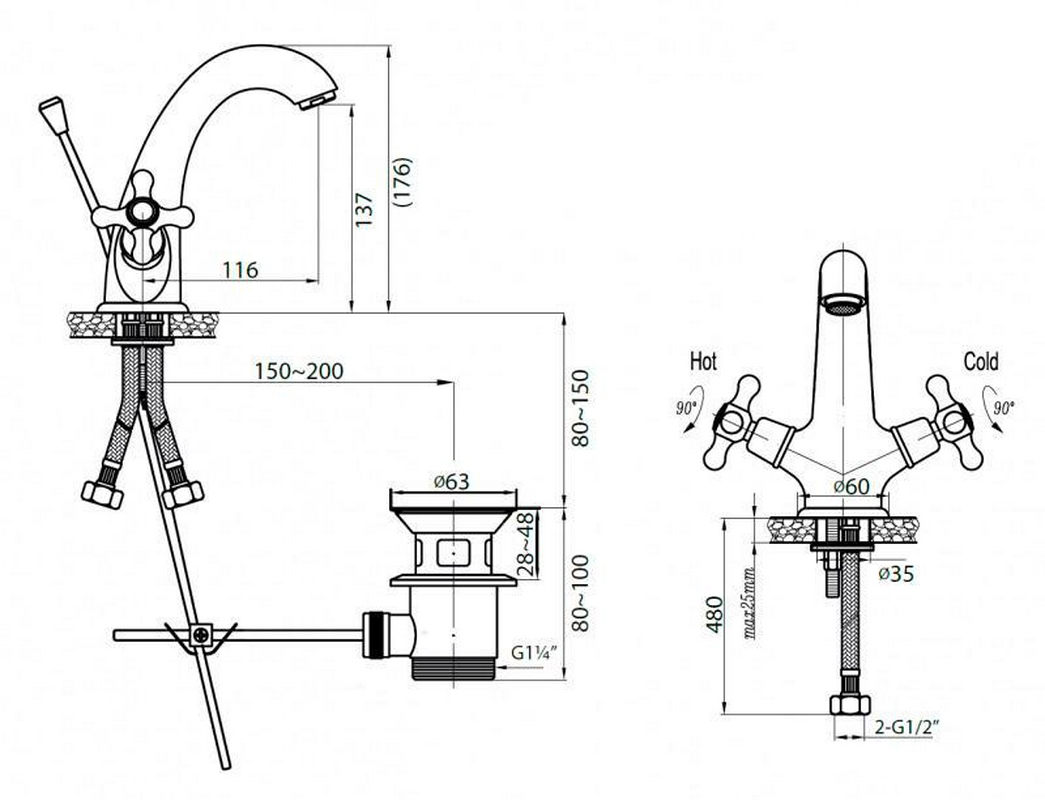 Смеситель для раковины, с д/к, (цв.бронза), Retro ZZ