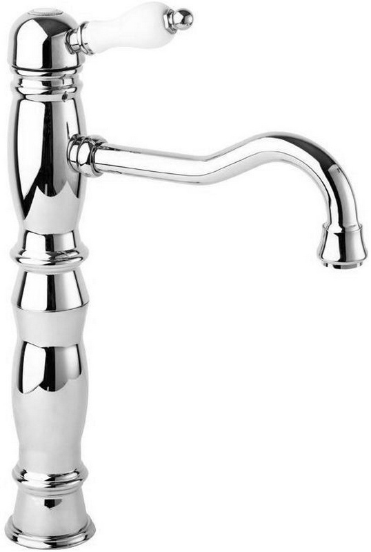 Смеситель для раковины, "Высокий", c д/к, (цв.хром, ручка цв.белая), Venezia ZZ