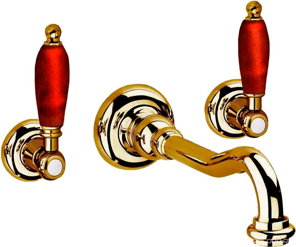 Смеситель для раковины, встраиваемый в стену, излив 215мм, (цв.бронза, ручки пластик цв.орех), Retro ZZ