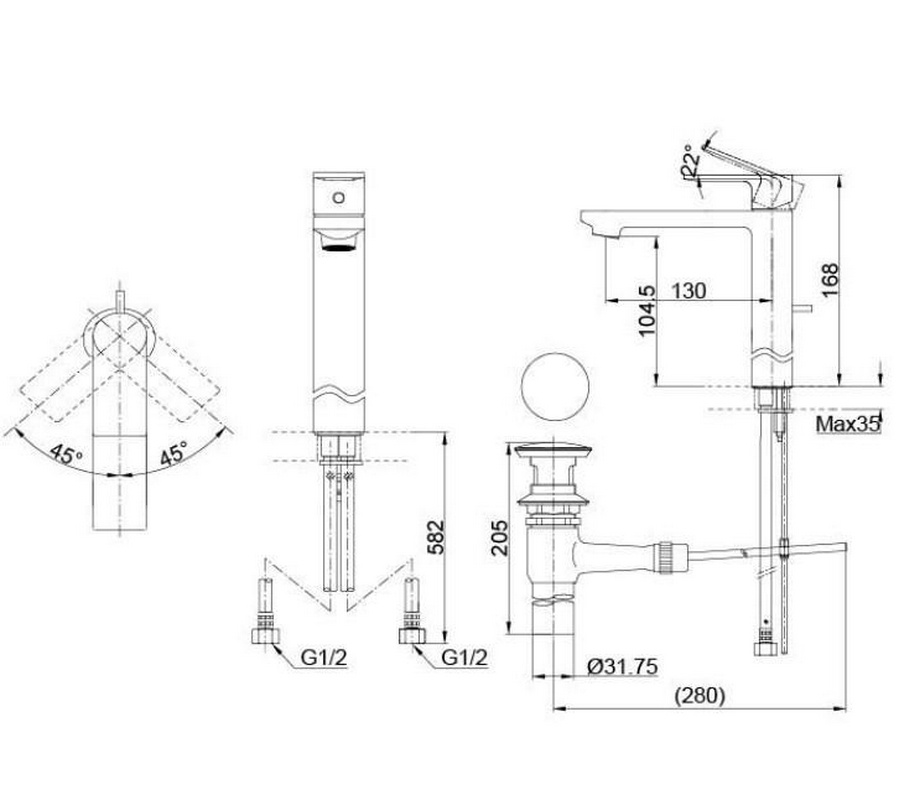 Смеситель для раковины, с д/к, (цв.хром), ZZ Toto MH DL368