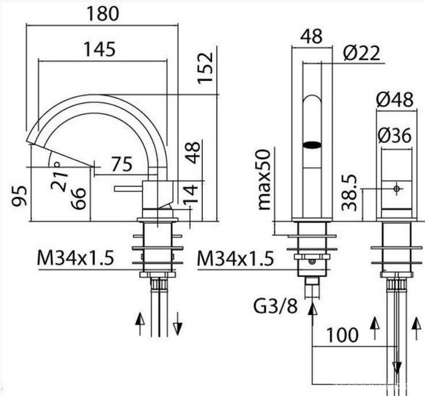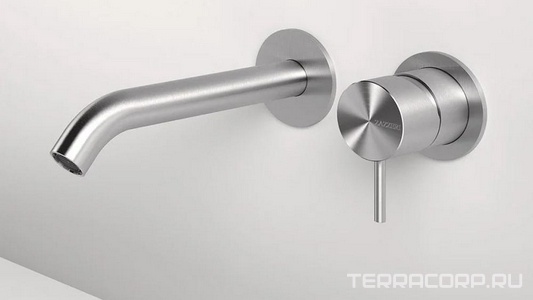 Смеситель для раковины, излив 145хh90мм, на два отверст., ручка устан.отдельно, БЕЗ д/к, (цв.нерж.сталь), Z316 ZZ
