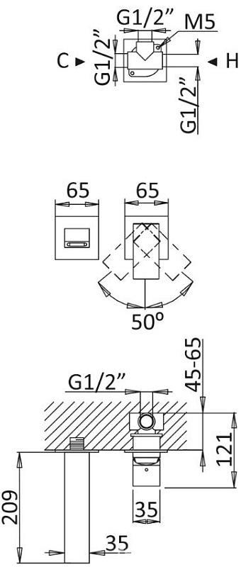 Смеситель для раковины настенный, излив 209мм, без д/к, (внутр.часть в компл.), (цв.хром), Porta ZZ