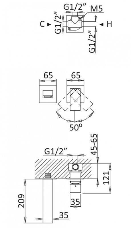 Смеситель для раковины настенный, излив 209мм, с д/к, (внутр.часть в компл.), (цв.бронза), Porta ZZ