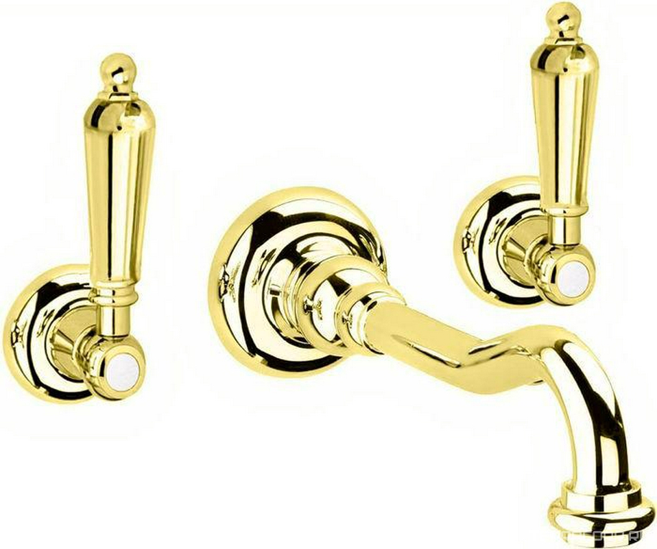 Смеситель для раковины, встраиваемый в стену, излив 215мм, (цв.золото, ручки пластик металл), Retro ZZ