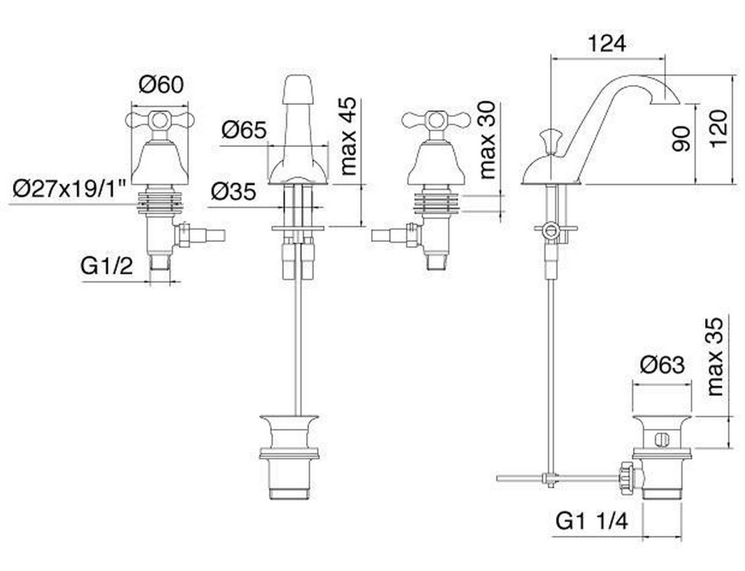 Смеситель для раковины, на 3 отв., мал.излив, с д/к, (цв. бронза), Romantica ZZ