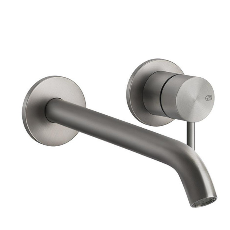 Смеситель для раковины, встраиваемый в стену, 2 ручк., излив 275мм, (цв. тертая сталь), 5mm ZZ