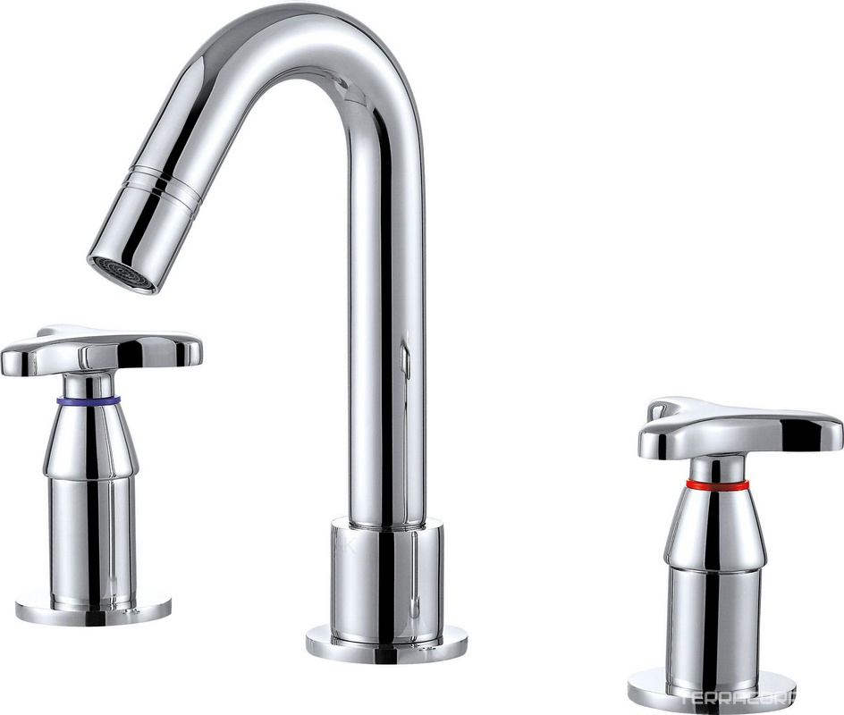 Смеситель для раковины на 2 отверстия, настенный монтаж, внутр. часть в комплекте, хром
